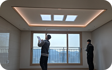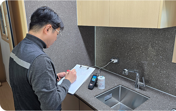 방사능 라돈수치 같은 유해성 성분을 각 실별로 점검합니다.