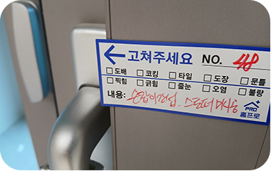 눈에 보이는 파손부터 자재불량, 가구 미설치까지 꼼꼼하게 확인하고 입주자 및 시공사가 쉽게 확인할 수 있게 자체 하자 스티커를 부착해 드립니다.