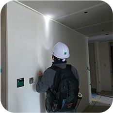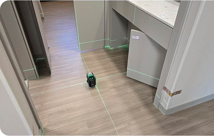 벽체, 창호, 가구 등의 수직도를 정밀하게 측정합니다.