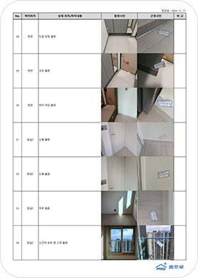 기술사, 기사, 하자관리, 건설사업관리 및 대기업 공동주택 시공 경력자로 구성된 건축전문가가 육안으로 도배, 마루, 가구 찍힘 등