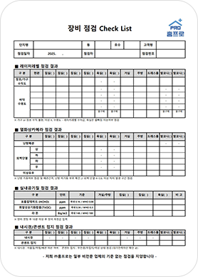 점검결과, 사진이 기록된 점검결과보고서 및 장비점검 check list를 제공해드립니다.