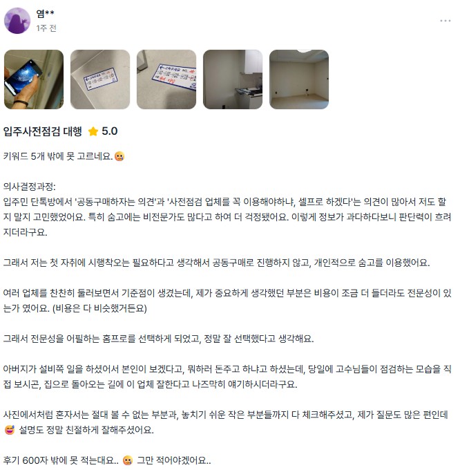 사전점검 업체가 필요한지 고민..