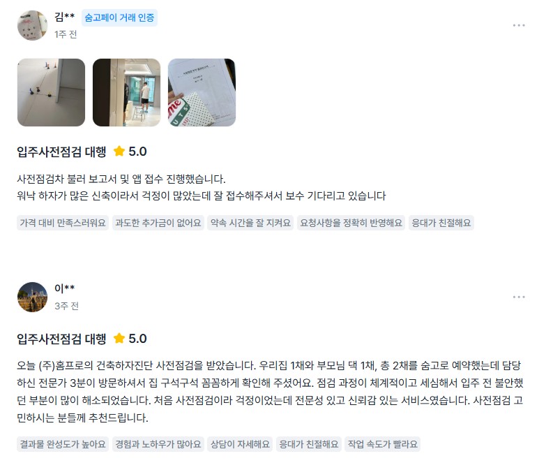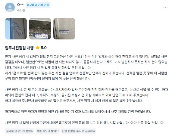 홈프로를 통해 아파트 사전점검..