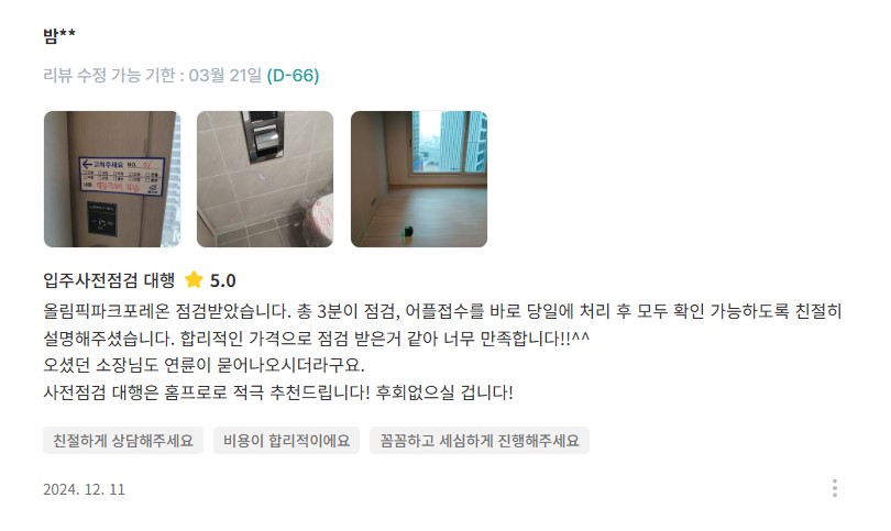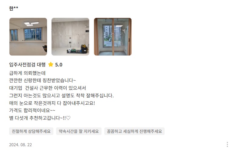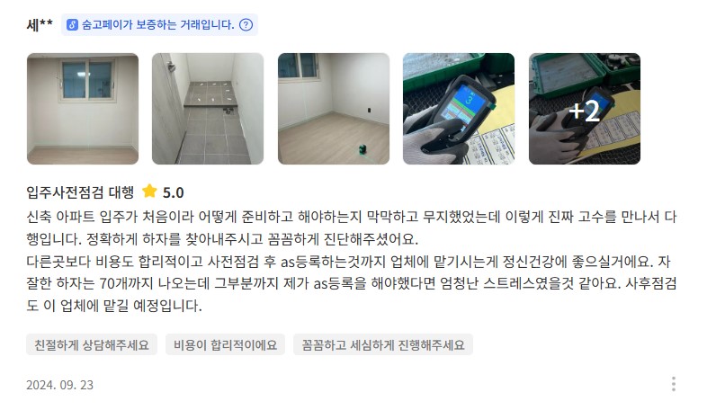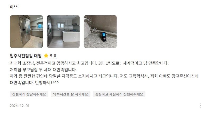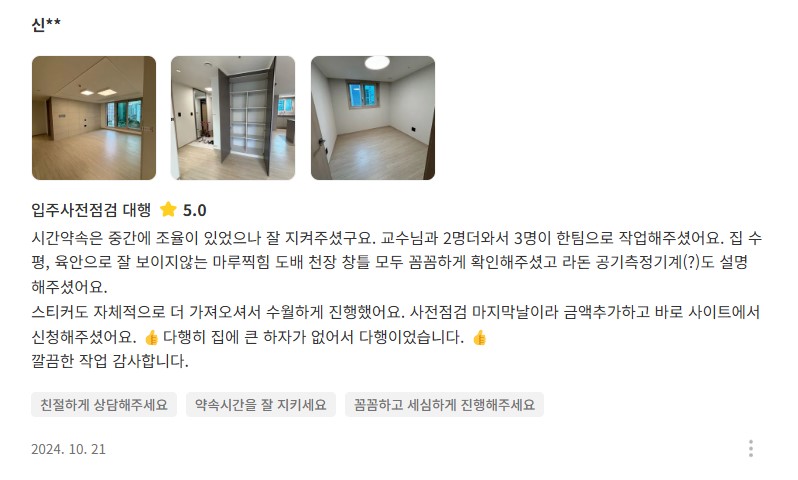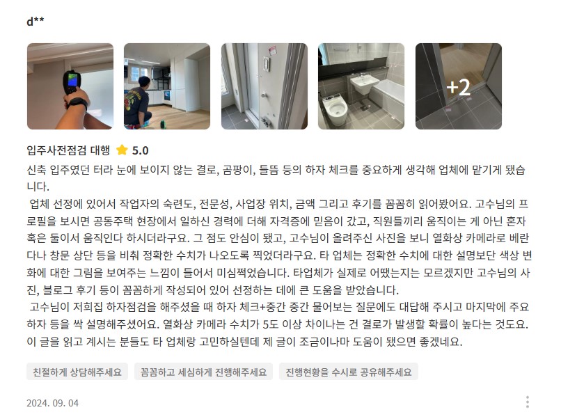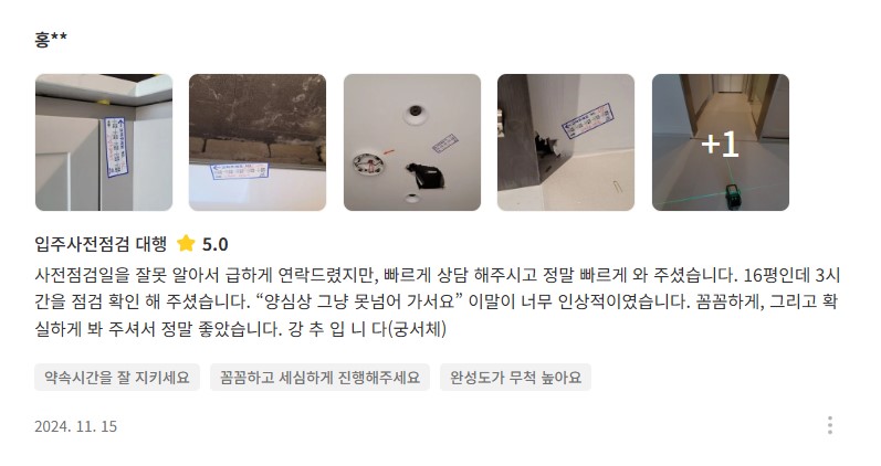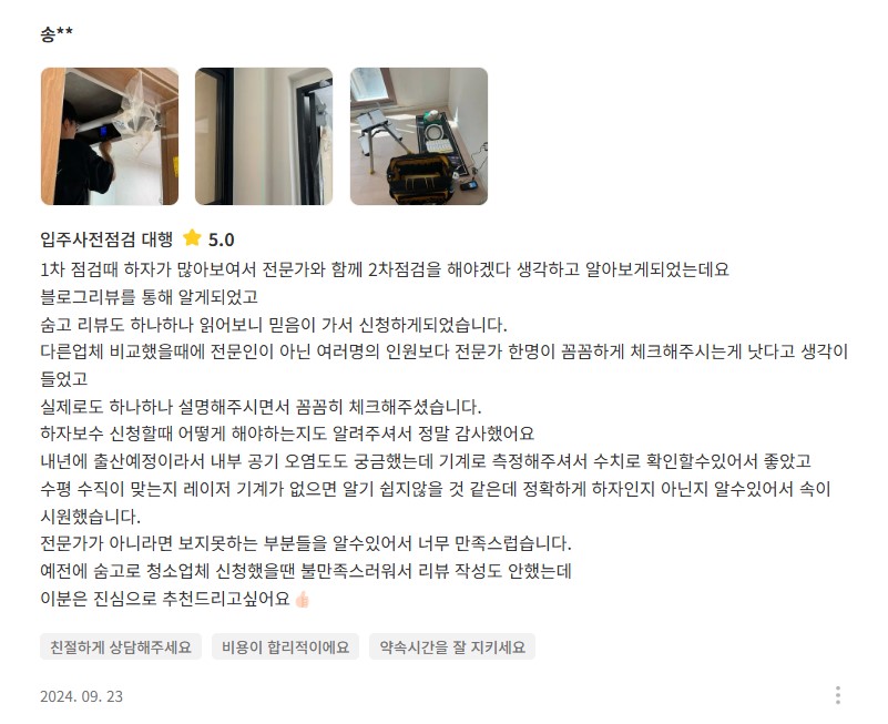 전문장비와 꼼꼼함으로 믿음이 가는 홈프로였습니다.