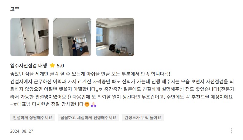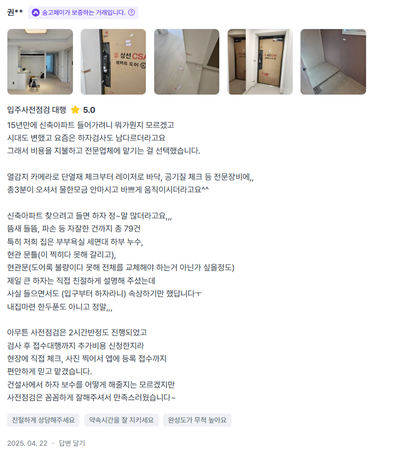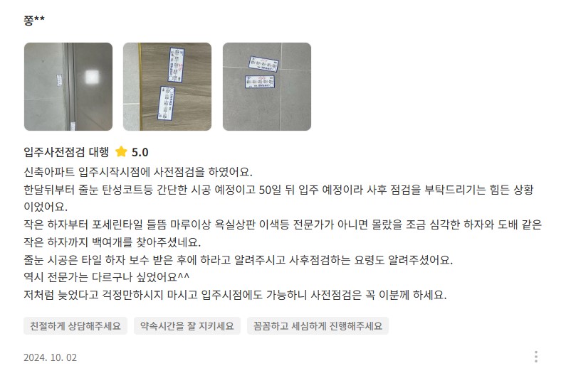 1차 점검때 하자가 많아보여서..